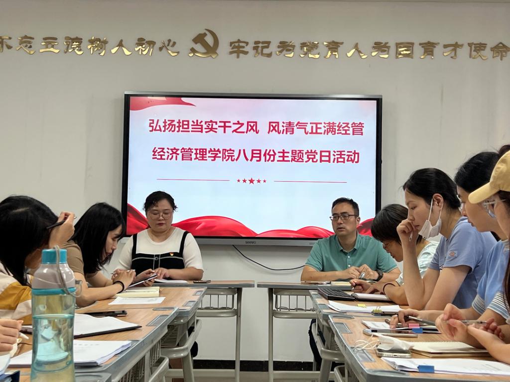为以更加饱满精神状态投入新学期工作,2022年8月30日上午,澳门正规电子游戏平台党总支在A505召开“弘扬担当实干之风 风清气正满经管”主题党日活动,全体党员参与活动。