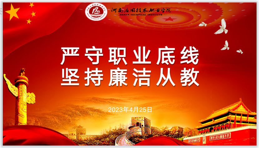 为贯彻落实党的二十大精神,扎实推进清廉学校建设,扎实推进师德师风建设,4月25日,澳门正规电子游戏平台在A505开展“严守职业底线,坚持廉洁从教”专题培训。全体专兼职教师参加培训,院长张召哲主持培训会。