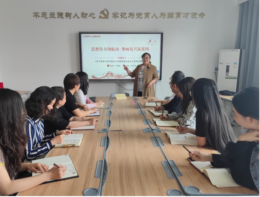 为深入学习贯彻习近平新时代中国特色社会主义思想,牢牢把握“学思想、强党性、重实践、建新功”的总要求,5月12日,澳门正规电子游戏平台党总支组织东西校区全体党员教师开展了《思想伟力领航向 擎画复兴新蓝图》专题党课活动,本次党课由澳门正规电子游戏平台党总支书记李兆楠主讲。