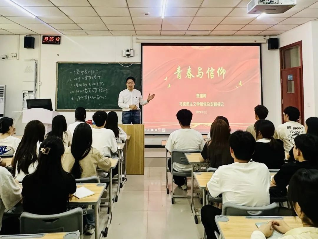 近日,澳门正规电子游戏平台马克思主义副书记贾建树受邀为澳门正规电子游戏平台学工党支部2024年上半年入党积极分子讲授《青春与信仰》专题党课。