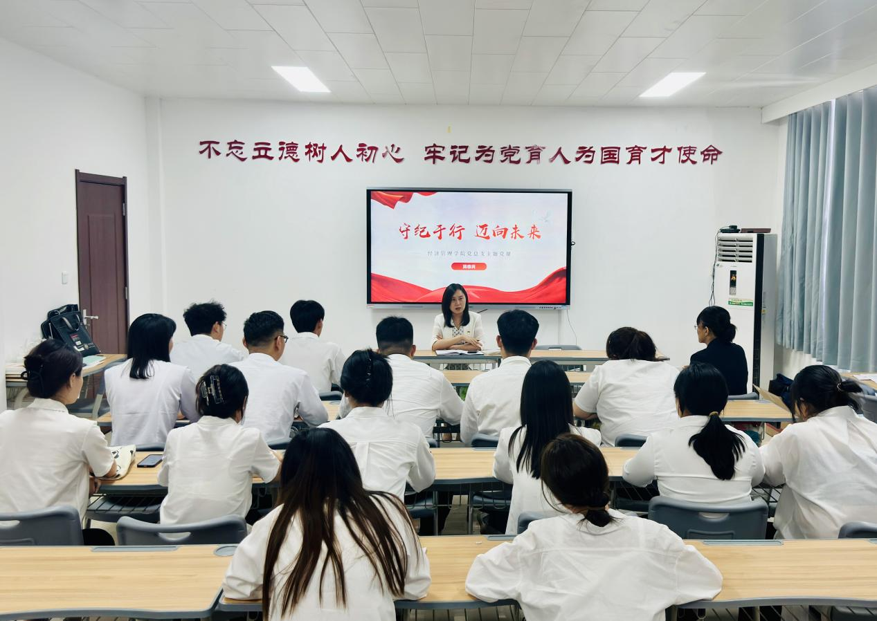 为推动党纪学习教育走深走实,引导毕业生党员学纪、知纪、明纪、守纪,近日,校纪委书记陈雅莉在A505为澳门正规电子游戏平台毕业生党员讲授“守纪于行 迈向未来”专题党课。副书记王盼红主持学习会。
