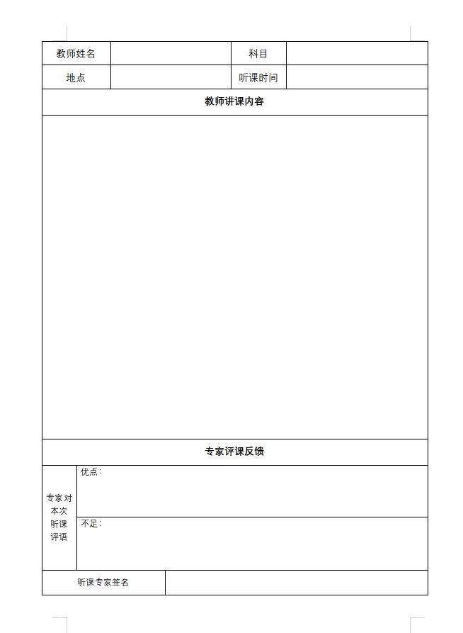 3.听课结束后,听课人员应如实填写听课评价标准、教师手册上听课记录,评价意见要客观公正,真实反映教学的实际情况,评价结果作为教师教学质量评价的参考依据。
