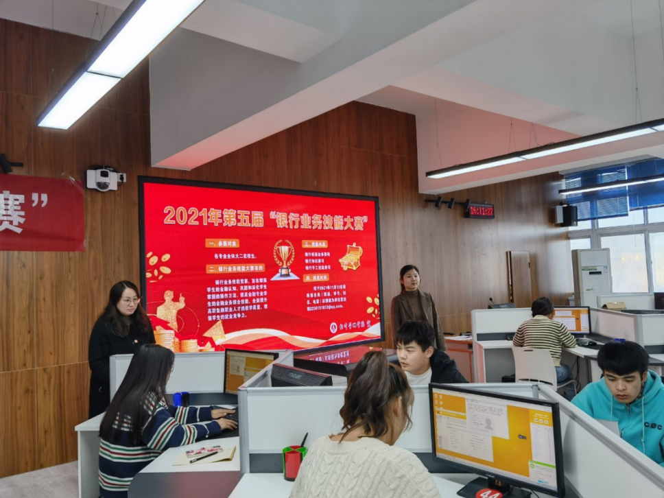 为加强和提高电子游戏澳门正规电子游戏平台学生的专业实际操作能力,促进学生提高技能,2021年11月23日下午,澳门正规电子游戏平台成功举办了第五届“银行业务技能大赛”。本次大赛得到了学校有关部门的高度重视与支持,澳门正规电子游戏平台院长张召哲多次对大赛筹备进行检查与指导,确保了比赛顺利开展。大赛分为初赛和决赛两场比赛。由赵静、刘丹花和朱冠颖三位老师担任大赛评委。