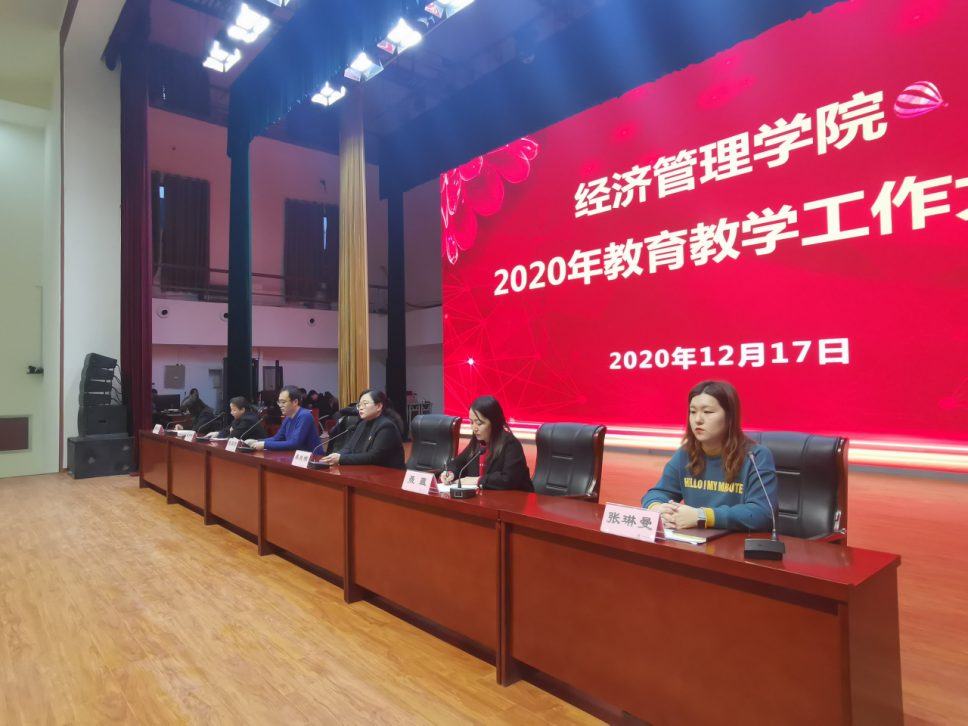 2020年12月17日下午在学校学生活动中心,澳门正规电子游戏平台召开2020年度教育教学工作大会,经管学院党政班负责人、全体专兼职教师及学生参加本次大会,会议由办公室主任张晓凤主持。