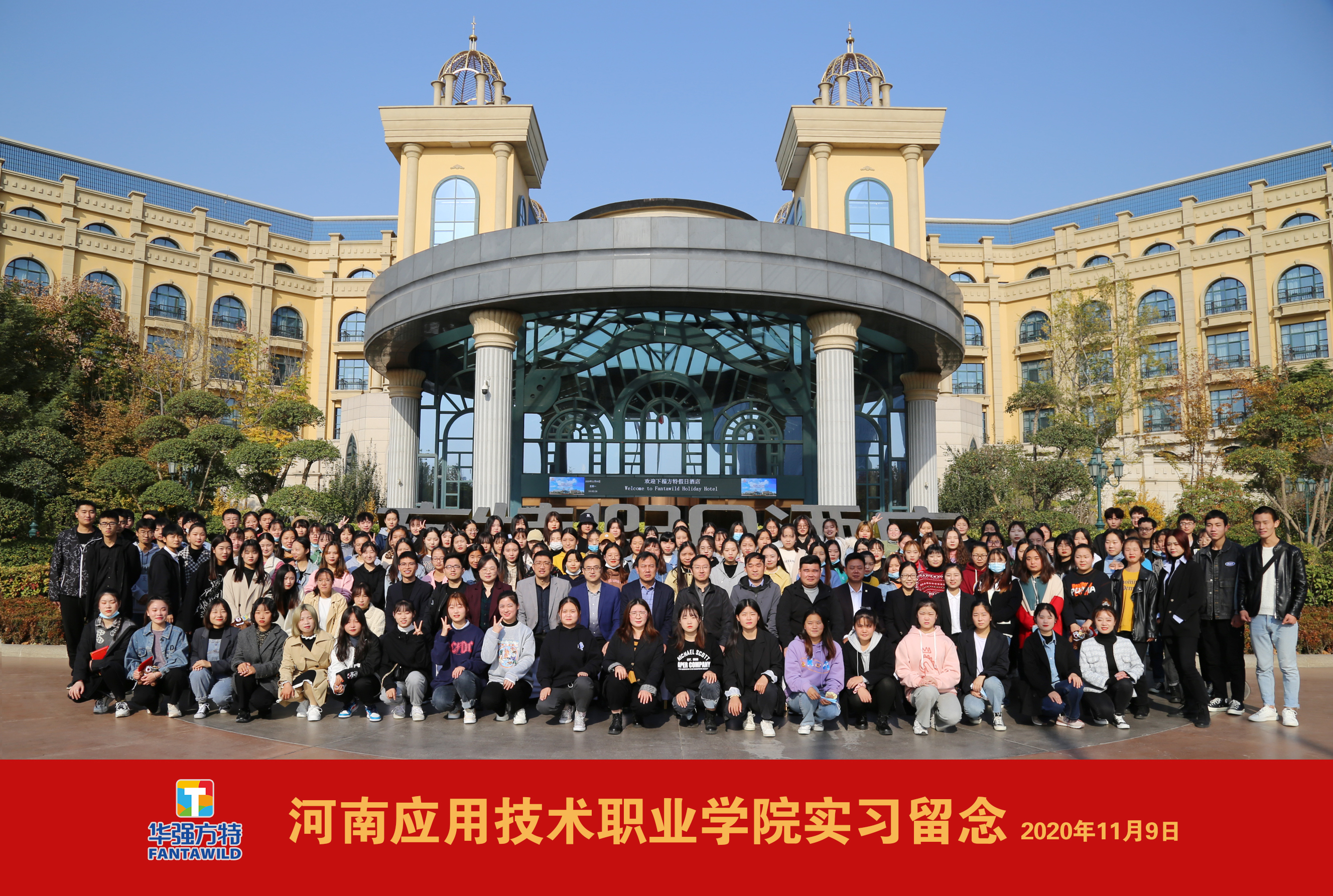 电子游戏澳门正规电子游戏平台2018级顶岗实习学生在河南华强科技有限公司(方特)阶段性实习圆满结束。11月9日,企业特意为电子游戏实习生举隆重的结业暨颁奖典礼。学工部部长马伟强、经管学院院长张召哲、书记李兆楠、招生就业处副处长荆伟科、跟岗指导教师李小闯,方特人力资源总监杨绍伟、人力资源中心主任姚真等部门负责人出席典礼。
