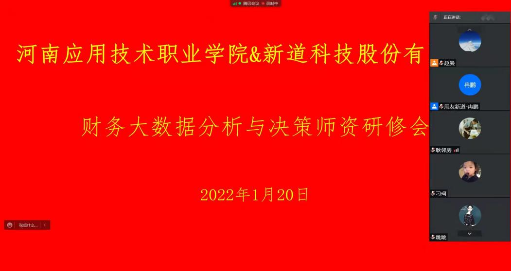 大数据采集、挖掘与分析等新型信息技术的快速发展,对高校的财会专业建设提出了全新挑战,为了促进大数据技术与财会专业教学的有机结合,提高电子游戏大数据与会计、大数据与财务管理的专业教学质量,2022年1月20日,澳门正规电子游戏平台财务管理和会计教研室的全体专兼职教师参加了由新道科技股份有限公司主办的财务大数据分析与决策线上培训。