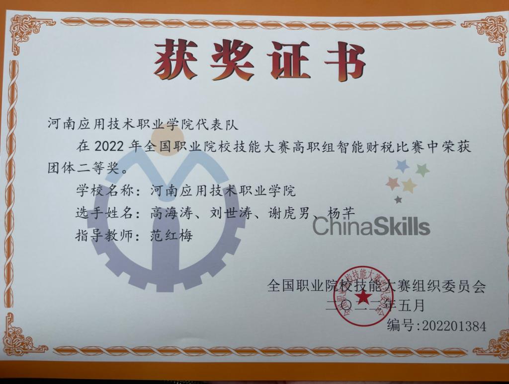 2022年8月22至23日,全国职业院校技能大赛(高职组)智能财税赛项在广东水利电力职业技术学院举行。本次竞赛共有来自全国57个参赛队的228名参赛选手参加,电子游戏澳门正规电子游戏平台学子杨芊、高海涛、刘世涛、谢虎男四位同学在指导教师范红梅的精心指导下,不畏苦累、奋勇拼搏,最终斩获二等奖,实现了电子游戏财会类专业国家级技能大赛成绩新突破。