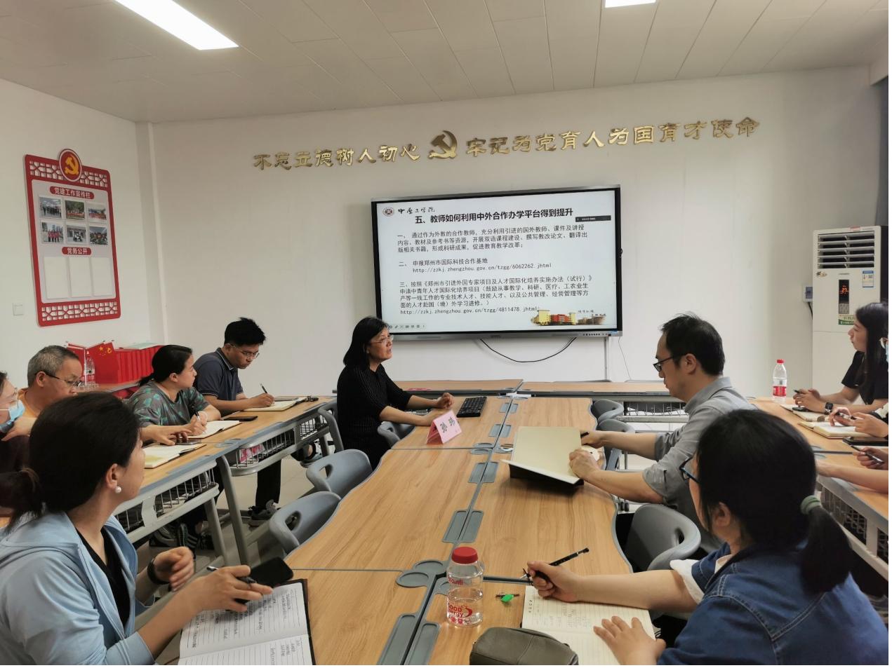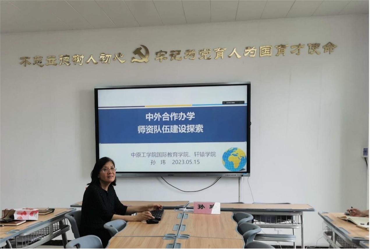 5月15日,中原工学院国际教育学院院长孙玮教授应邀来到电子游戏,围绕国际合作办学管理模式、专业发展及师资团队建设做专题报告。澳门正规电子游戏平台全体专兼职教师参加了本次交流活动。