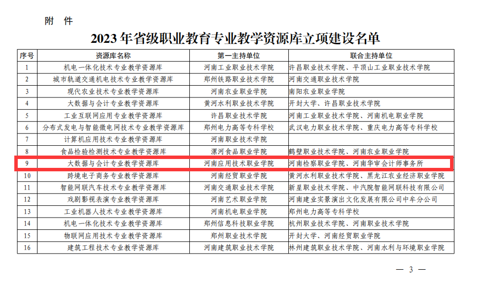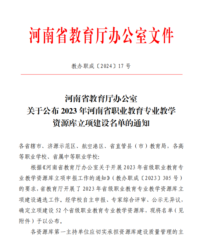近日,河南省教育厅下发了《河南省教育厅办公室关于公布2023年河南省职业教育专业教学资源库立项建设名单的通知》(教办职成〔2024〕17号),电子游戏主持的大数据与会计专业教学资源库获批立项建设项目。