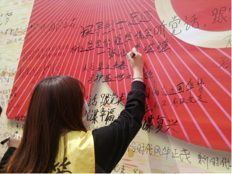 2021年也是实施“十四五”规划、开启全面建设社会主义现代化国家新征程的第一年。站在“两个一百年”奋斗目标的历史交汇点上,2021年4月22日下午,在校团委的组织下,经管学子齐聚篮球场,将发自内心的憧憬与期望献给党。