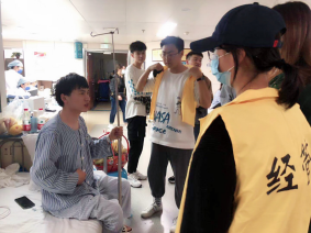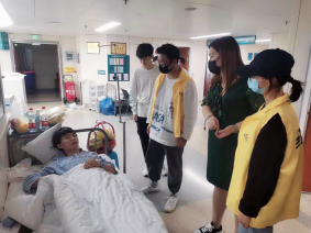 2021年4月27日,澳门正规电子游戏平台学工办主任张琳曼、入党积极分子代表顾文欣、团总支学生会副主席王献伟以及部分学生代表学校探望生病住院的金融1903班学生林鹏,同时送去了慰问与祝福。
