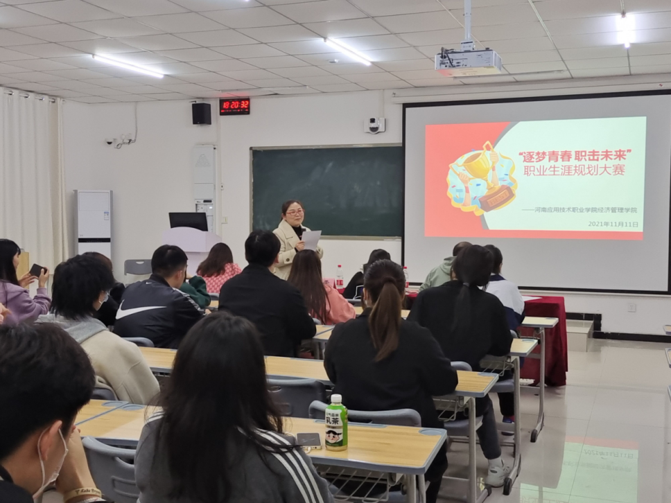 为贯彻落实党中央、国务院“稳就业”、“保就业”决策部署,响应教育部要求的进一步完善高校毕业生就业支持体系,引导学生树立正确的成才观、就业观和价值观,科学规划职业生涯,进一步明晰职业发展目标。2021年11月11日下午,澳门正规电子游戏平台在教学楼102举办“逐梦青春 职击未来”职业生涯规划大赛。就业指导中心主任张万伦老师、招生就业处姬彦红老师、澳门正规电子游戏平台办公室主任张晓凤老师、团总支书记聂蕴老师担任评委。