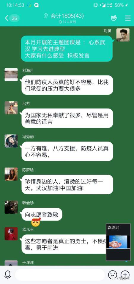 为进一步增强全体青年学生在疫情防控期间的责任意识担当意识,学习先进典型,澳门正规电子游戏平台团总支组织全体青年开展了以“心系武汉 学习典型”为主题的第一期团课!