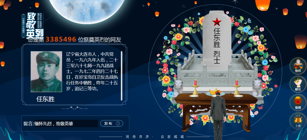 清明祭扫是中华民族的传统习俗,也是革命传统教育、爱国主义教育和感恩教育的重要方面。2020年是中国人民抗日战争暨世界反法西斯战争胜利75周年,中国人民志愿军抗美援朝入朝作战70周年。退役军人事务部以“致敬·2020清明祭英烈”为主题,以缅怀先烈、弘扬英烈精神为重点,开展网上祭扫,致敬英雄烈士。澳门正规电子游戏平台团总支组织全学院34个团支部共1450人通过退役军人事务部主办的中华英烈网设立的祭扫专栏进入,利用集中统一的网上祭扫平台开展祭扫。活动以特殊的祭扫形式,向那些为新中国成立和人民幸福生活而英勇献身的烈士们、向在此次疫情中奋勇“逆行”的英雄们表达一份敬意,寄托一份思念,进一步传承和弘扬英烈精神,营造致敬英烈、缅怀英烈的浓厚氛围。
