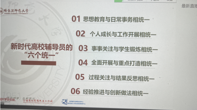 2022年1月12日晚7:30,2021年全国“最美高校辅导员”刘国权老师做客直播间,为大家分享《新时代高校辅导员要思考与答好的“四个问题”》。澳门正规电子游戏平台组织全体学生工作人员通过线上观看直播的方式参加了本次讲座。