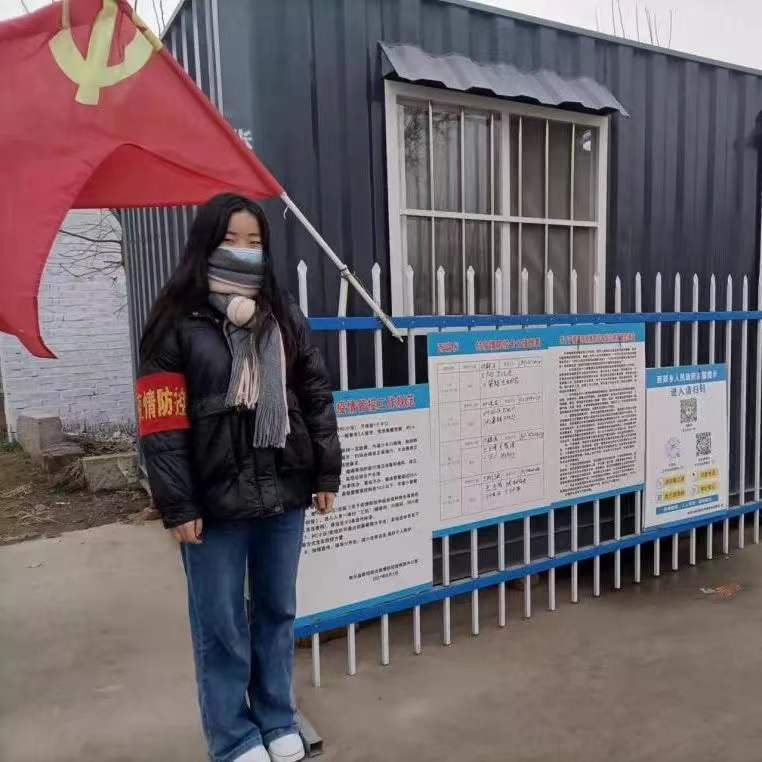在寒冷天气下,她与其他值班志愿者们坚守在防疫关卡的岗位上。不论天气如何,她始终提前到达岗位,坚守到最后一刻。在身体和精神的双重疲惫下,对待疫情防控方面却没有丝毫的放松,对每一个入村的村民,指导扫码,认真做好登记,如实测量体温,尽职尽责,为抗击疫情献出自己的一份力量。
