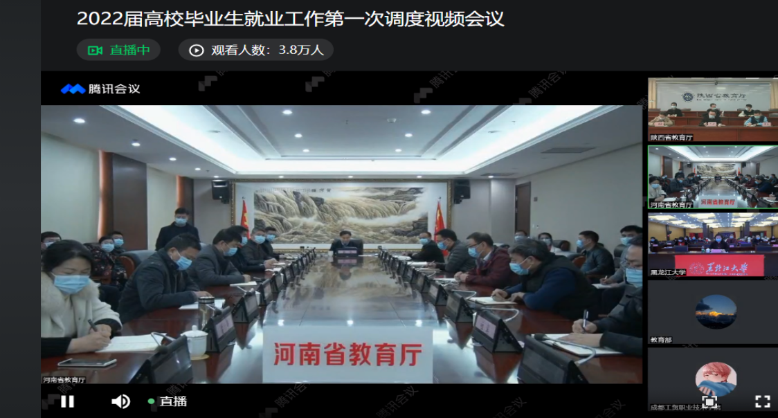 2022年1月18日下午14:30,教育部、人力资源社会保障部召开2022届全国普通高校毕业生就业工作第一次调度视频会议。河南省教育厅吕冰、四川省教育厅戴作安、陕西省教育厅高岭、电子科技大学申小蓉、中国政法大学李秀云、黑龙江大学丁宏、合肥职业技术学院王杰才,代表单位作了交流发言,介绍了本单位落实全国2021届高校毕业生就业工作会议精神、推进毕业生就业的工作情况。全国就业指导中心副主任宁小华认真总结了2021届高校毕业生就业工作,分享了全国就业指导中心在促进2022届高校毕业生稳就业促就业工作举措。最后,学生司副司长吴爱华肯定了2021届高校毕业生就业工作,分析了2022届高校毕业生就业形势及当前工作进展,安排了下一步就业工作部署。澳门正规电子游戏平台组织全体学工人员及毕业班辅导员通过线上观看直播的方式参加了本次视频会议。
