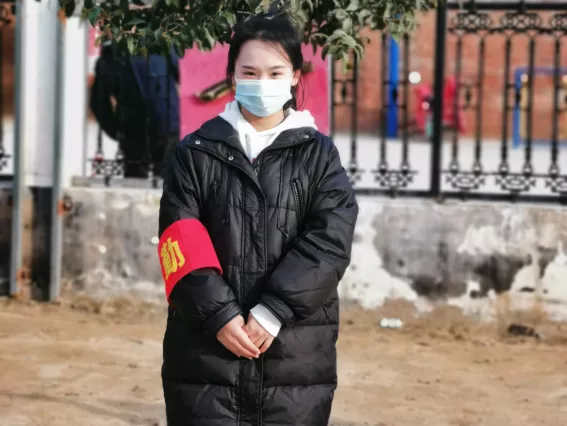 崔雨晴,家住河南省安阳市内黄县。作为一名大学生,面对家乡突发的疫情,积极加入了疫情防控志愿服务活动中,成为了一名志愿者。