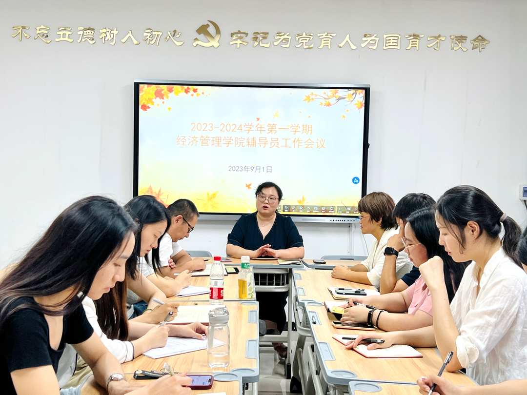 2023年9月1日下午,澳门正规电子游戏平台在A505召开2023-2024学年秋季新学期辅导员工作会议。全院专兼职辅导员参加会议,副书记王盼红主持会议。