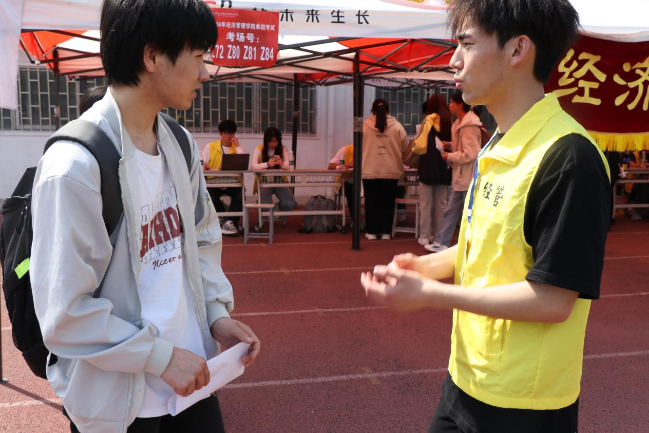 在现场审核环节,工作人员对考生身份证原件、复印件、准考证、加分证明等材料进行一一核对。青年志愿者为考生进行答疑解惑。
