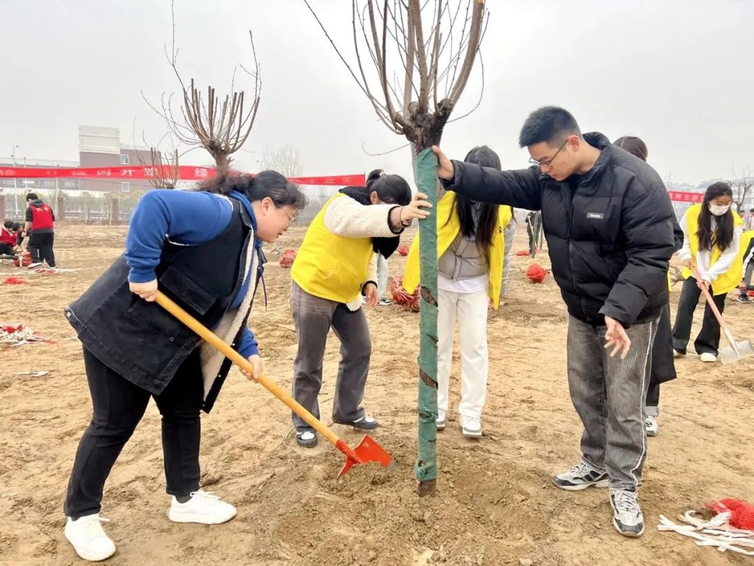 为营造爱绿、护绿、植绿的浓厚氛围,在第46个植树节期间,澳门正规电子游戏平台党总支组织党员教师及60余名团员青年共同前往开封校区(北院)开展“春风十里 正植有你”主题党日活动。校纪委书记陈雅莉以普通党员身份参加本次主题党日活动。