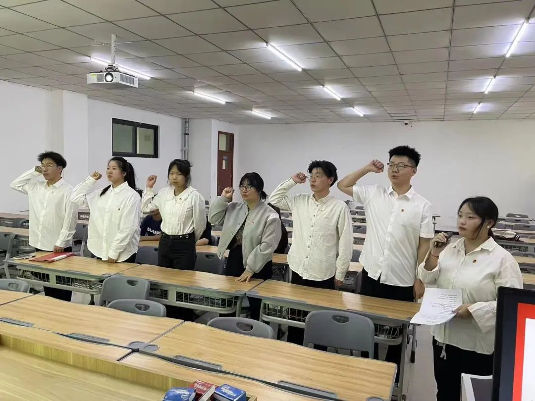 由老团员李宜菲带领新团员宣誓,老团员重温宣誓词。