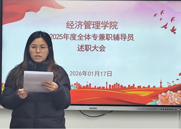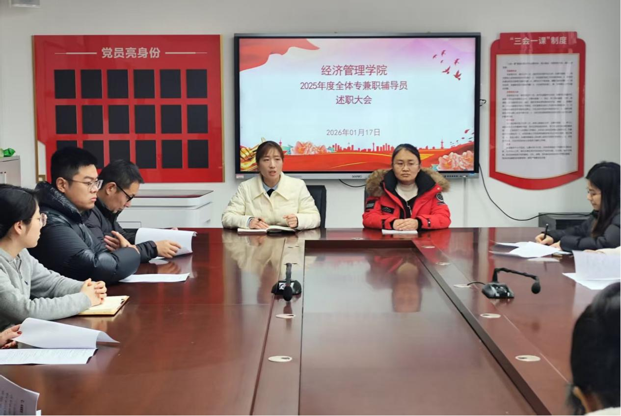 为全面总结学生管理工作成效,强化辅导员队伍建设,2026年1月17日,澳门正规电子游戏平台在郑州校区办公楼502召开2025年度辅导员工作述职会议。学院党总支书记王倩、副书记王盼红出席会议,全体专兼职辅导员参加,会议由王盼红主持。