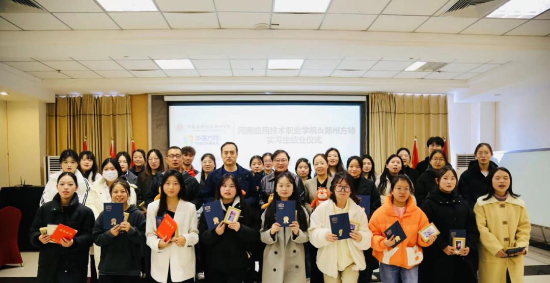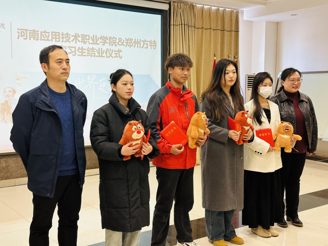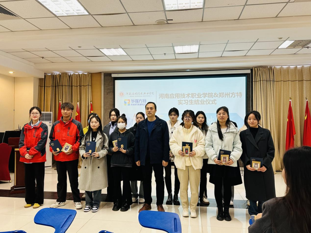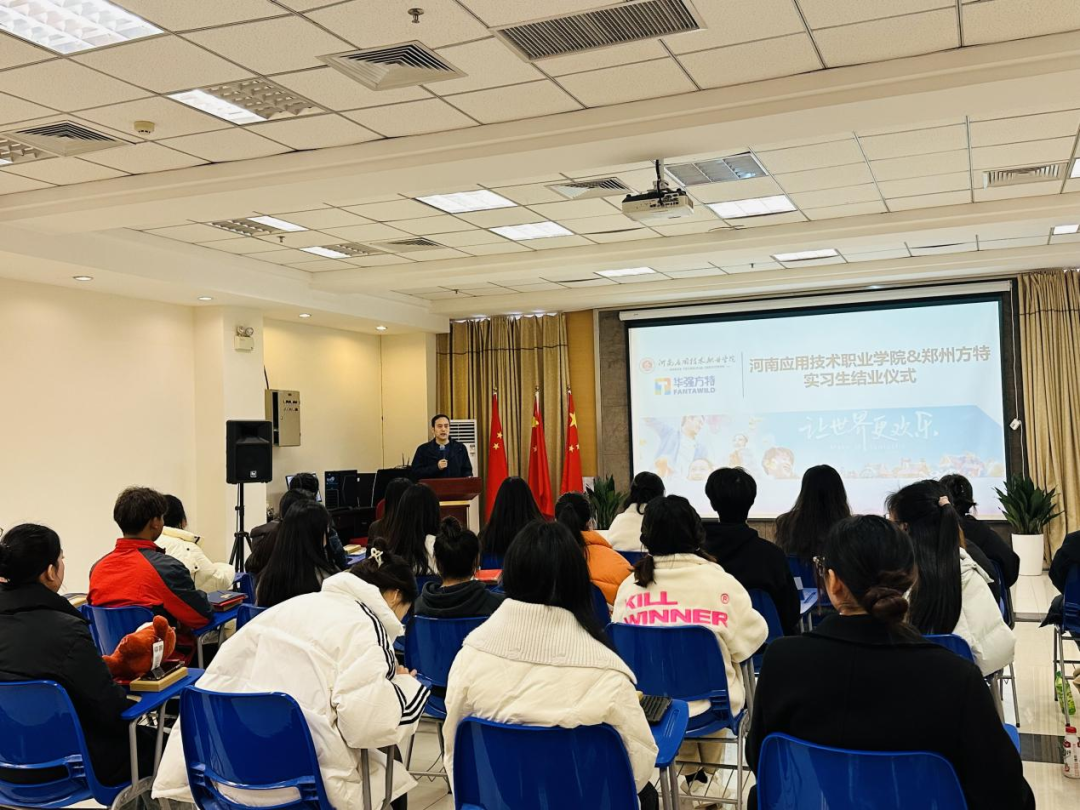 12月7日,澳门正规电子游戏平台党总支书记李兆楠、院长张召哲一行赴郑州方特参加实习生结业仪式。郑州方特人力资源中心主任姚真真、28名实习生参加结业仪式。