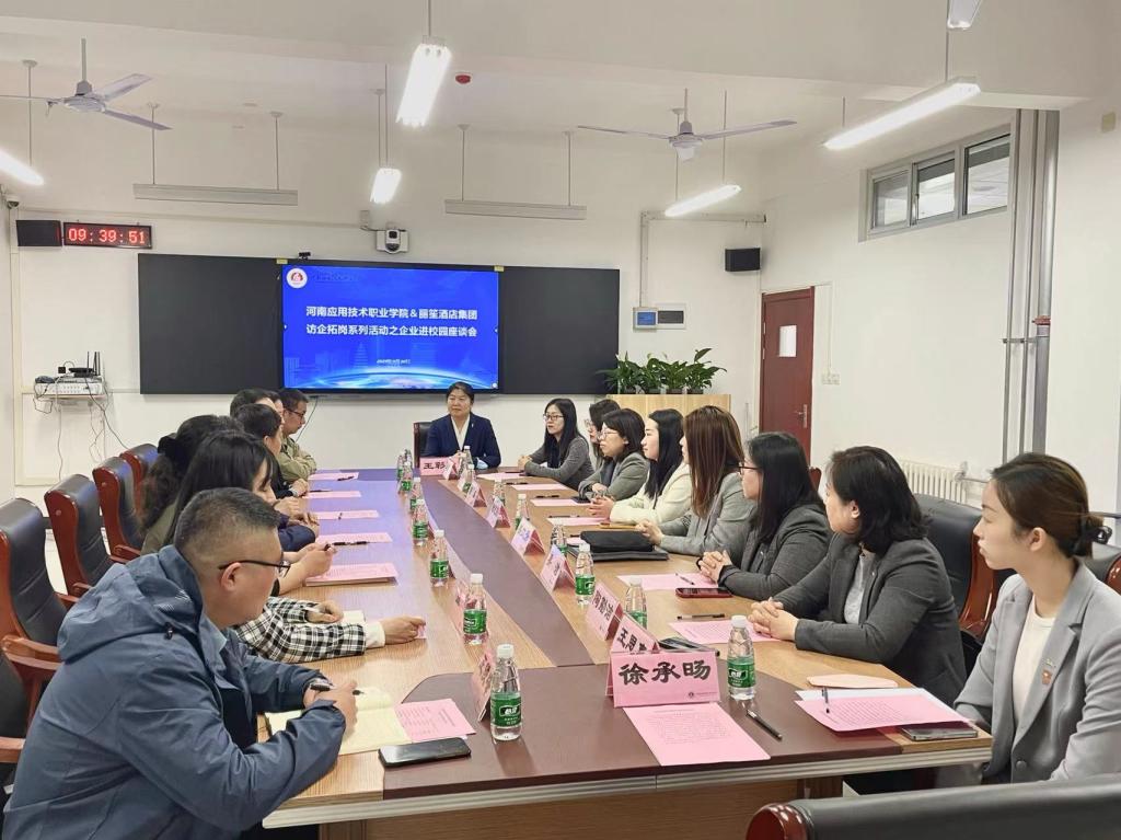 座谈会后,双方一起到酒店管理专业实训室与学生进行交流,分别通过宣传片播放、PPT展示以及面对面交流等方式向学生详尽介绍了企业的文化背景、发展历程、发展前景、晋升机制、薪资福利、岗位招聘要求等方面情况,与同学们进行互动问答,让同学们充分了解企业的招聘需求和相关信息,并分享了多年的工作经验以及心得体会。