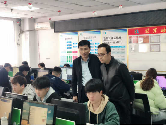 为加强学校与企业之间的合作和交流,结合学院“双高”建设规划,2021年3月16日,澳门正规电子游戏平台副院长张召哲、教学办主任柴芳芳、学工办主任张琳曼一行三人人到企财汇集团就人才培养、师资互聘、学生就业等问题进行了深入的洽谈。