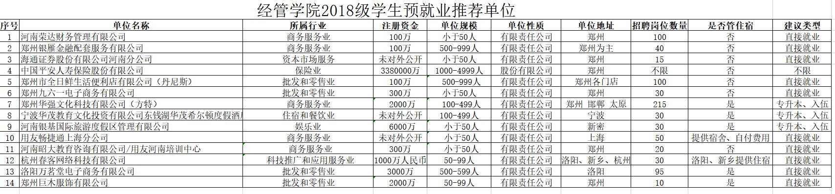 澳门正规电子游戏平台2018级学生预就业推荐单位