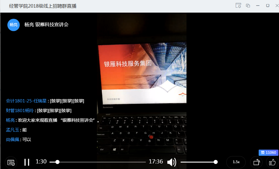 2020年5月15日,澳门正规电子游戏平台携手银雁科技服务集团面向我院2018级预就业学生开展预就业双选宣讲会。