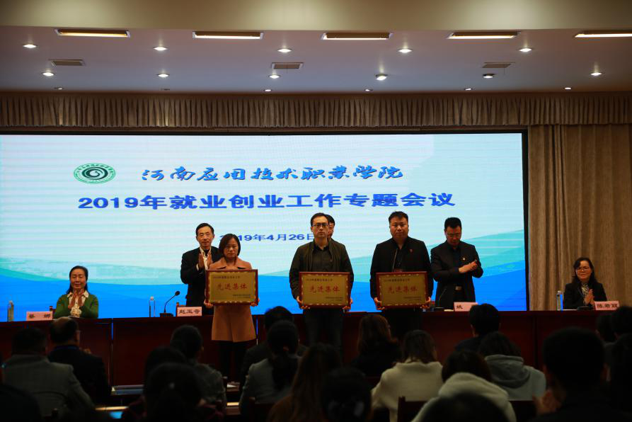 4月26日下午,电子游戏在实训中心二楼会议室召开2019年就业创业工作专题会议,学校党委书记秦书君,校长姚勇,各相关部门负责人及全体专兼职辅导员参加会议。会上,副校长赵玉奇宣读了《关于表彰2018年就业创业工作先进集体、先进个人的决定》,校领导为受表彰集体及个人进行了颁奖。我院就业工作表现突出荣获先进集体,李兆楠书记代表经管学院上台进行交流发言,张召哲院长代表经管学院上台领奖。