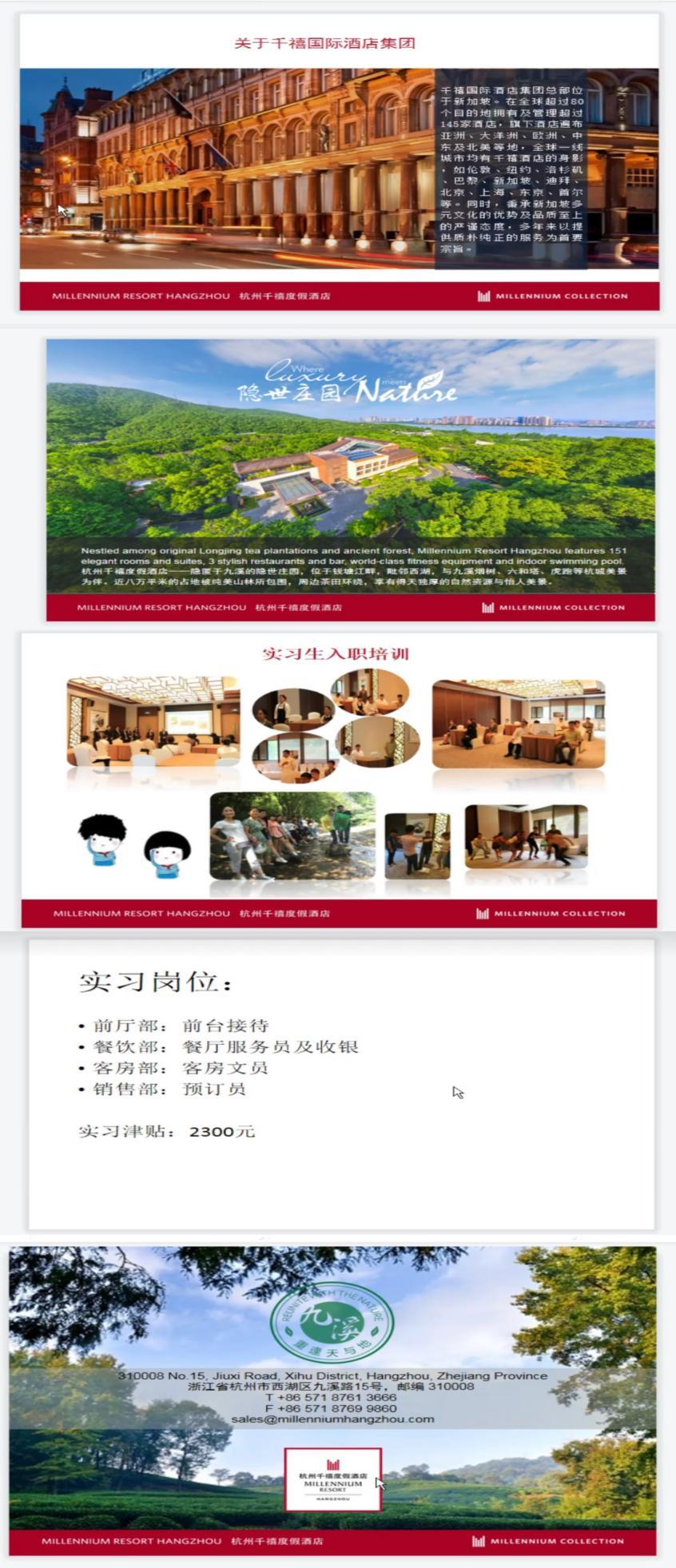 河南广发财务管理有限公司、杭州屏风山投资管理有限公司(杭州千禧度假酒店)、北京龙泉宾馆有限公司、南京世茂新里程置业有限公司世茂滨江希尔顿酒店、苏州贝瑞斯曼信息科技有限公司、河南银基冰雪酒店管理有限公司、中国人寿保险股份有限公司、大唐信服科技有限公司等8家企业受邀进行宣讲。