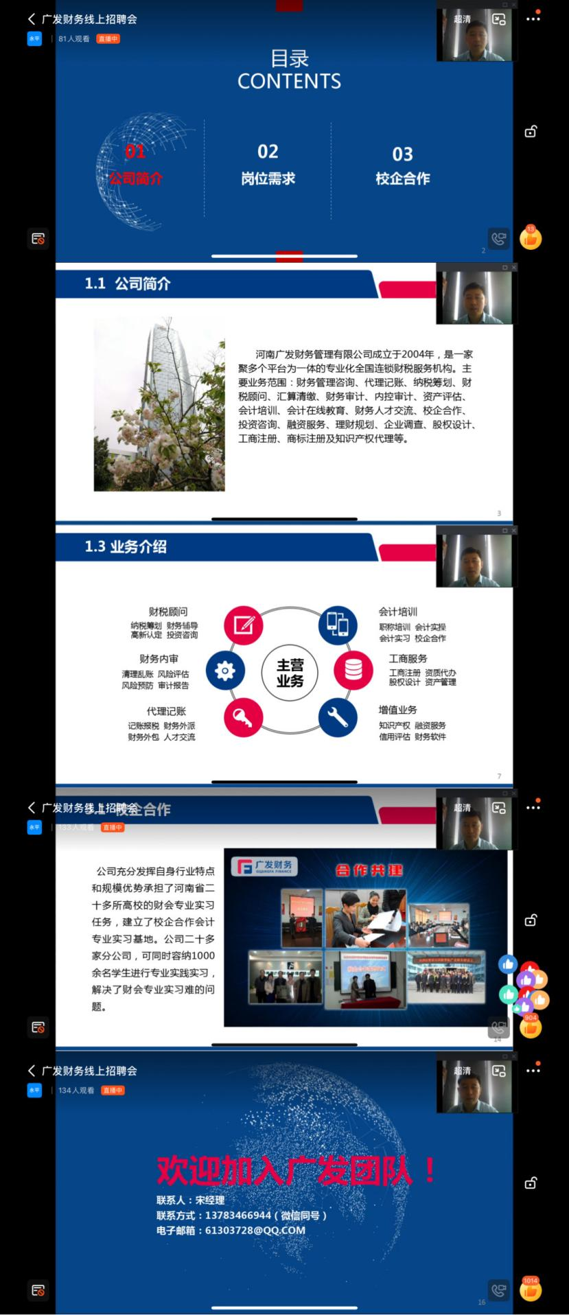 至此,5月12日-5月15日,澳门正规电子游戏平台共邀请19家企业进行宣讲,“云”上送岗,“职为你来”空中宣讲会取得圆满成功。愿同学们,以梦为马,不负韶华,积极准备面试,都能拿到自己满意的Offer!