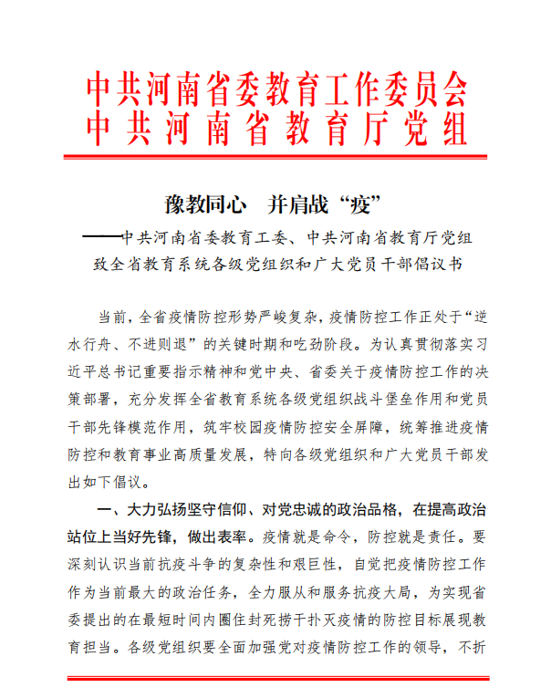 豫教同心 并肩战“疫”——中共河南省委教育工委、中共河南省教育厅党组