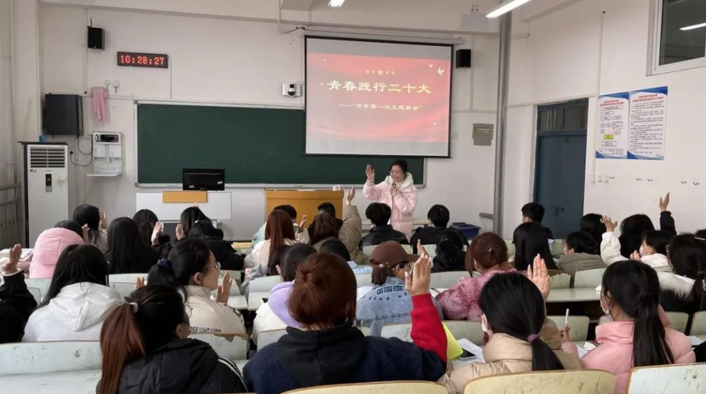 第一堂主题班会——来校第一周,辅导员们陆续组织进行“开学第一课”“青春践行二十大”主题班会。“开学第一课”主题班会围绕大学生成长困惑与需要开展学业规划、就业指导、疫情防控、心理健康等方面教育。“青春践行二十大”主题班会侧重激励学生以奋斗姿态激扬青春,不负时代、不负年华。