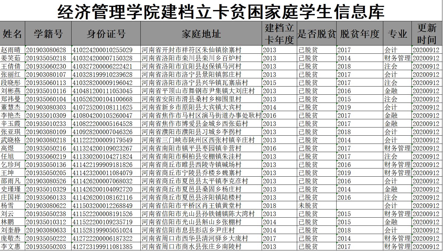 澳门正规电子游戏平台2020年度贫困生库公示