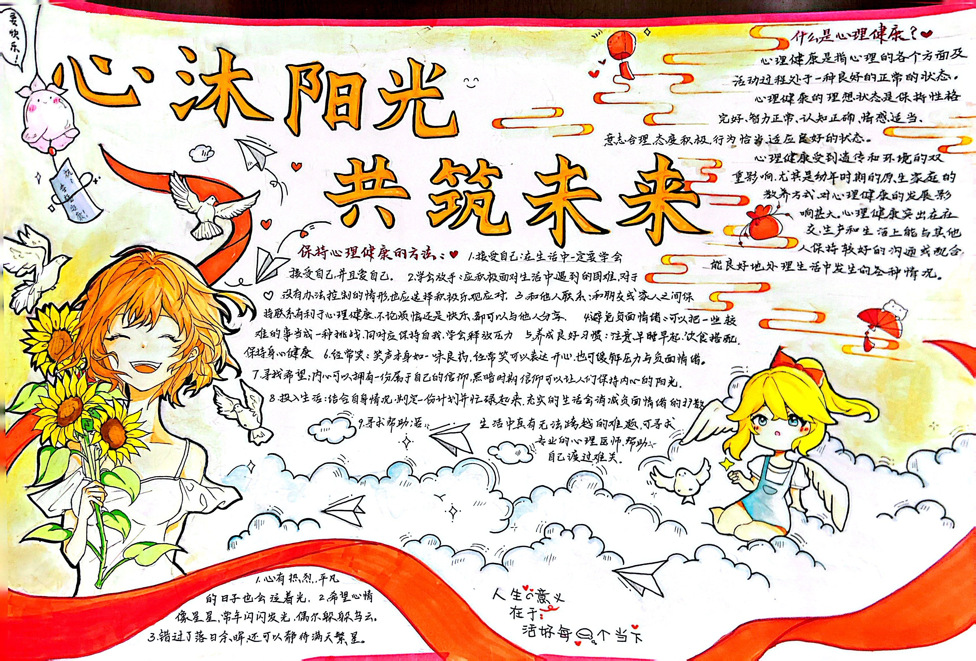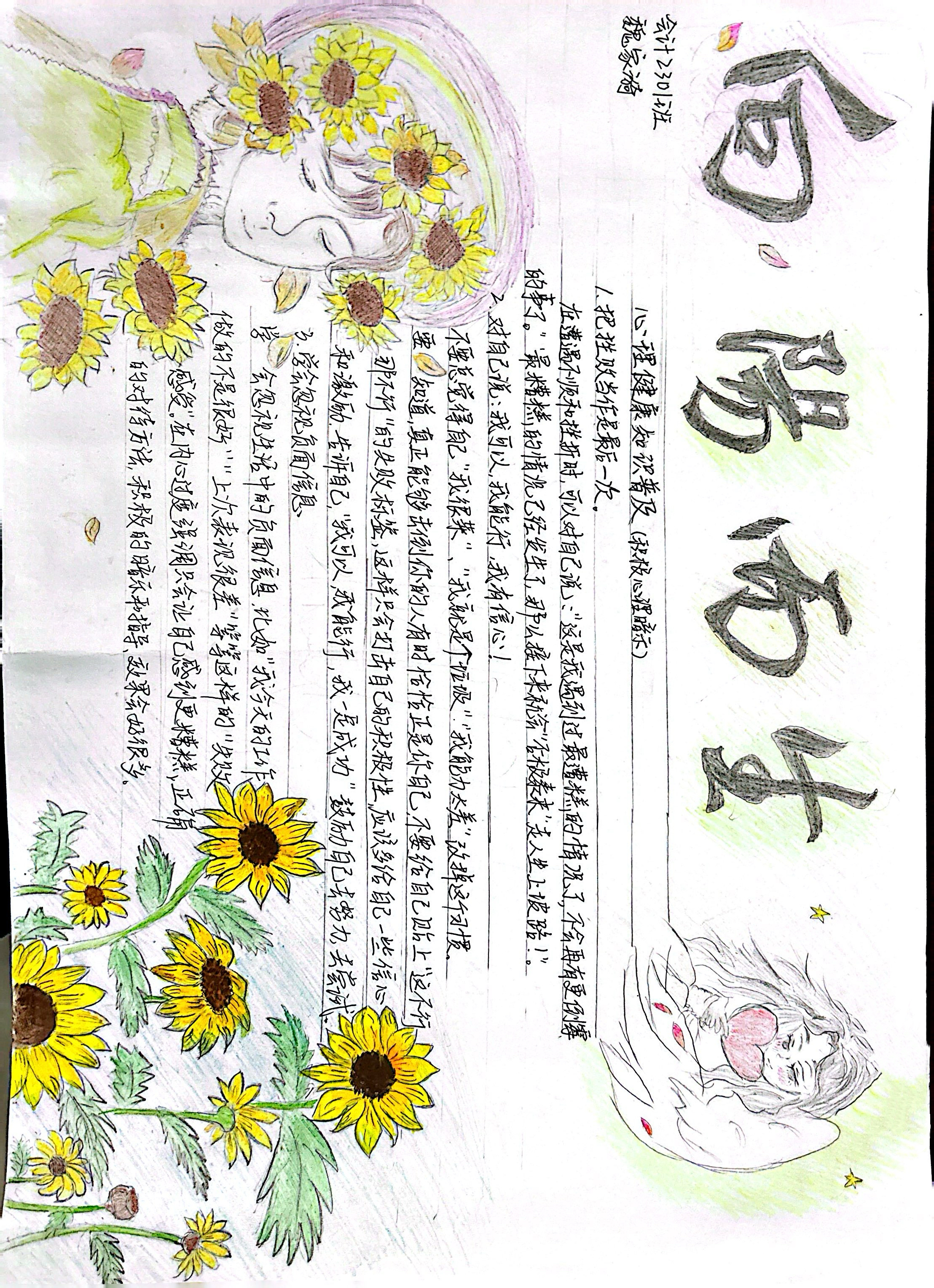 为进一步普及心理健康教育知识,切实提高我院学生的心理健康水平,澳门正规电子游戏平台开展了“心随画映”心理健康主题手抄报活动,同学们发挥自己的创意和想象力,用手中的笔和纸描绘出自己对健康心理的理解,传递了有关心理健康的知识,表达出积极向上的人生态度。