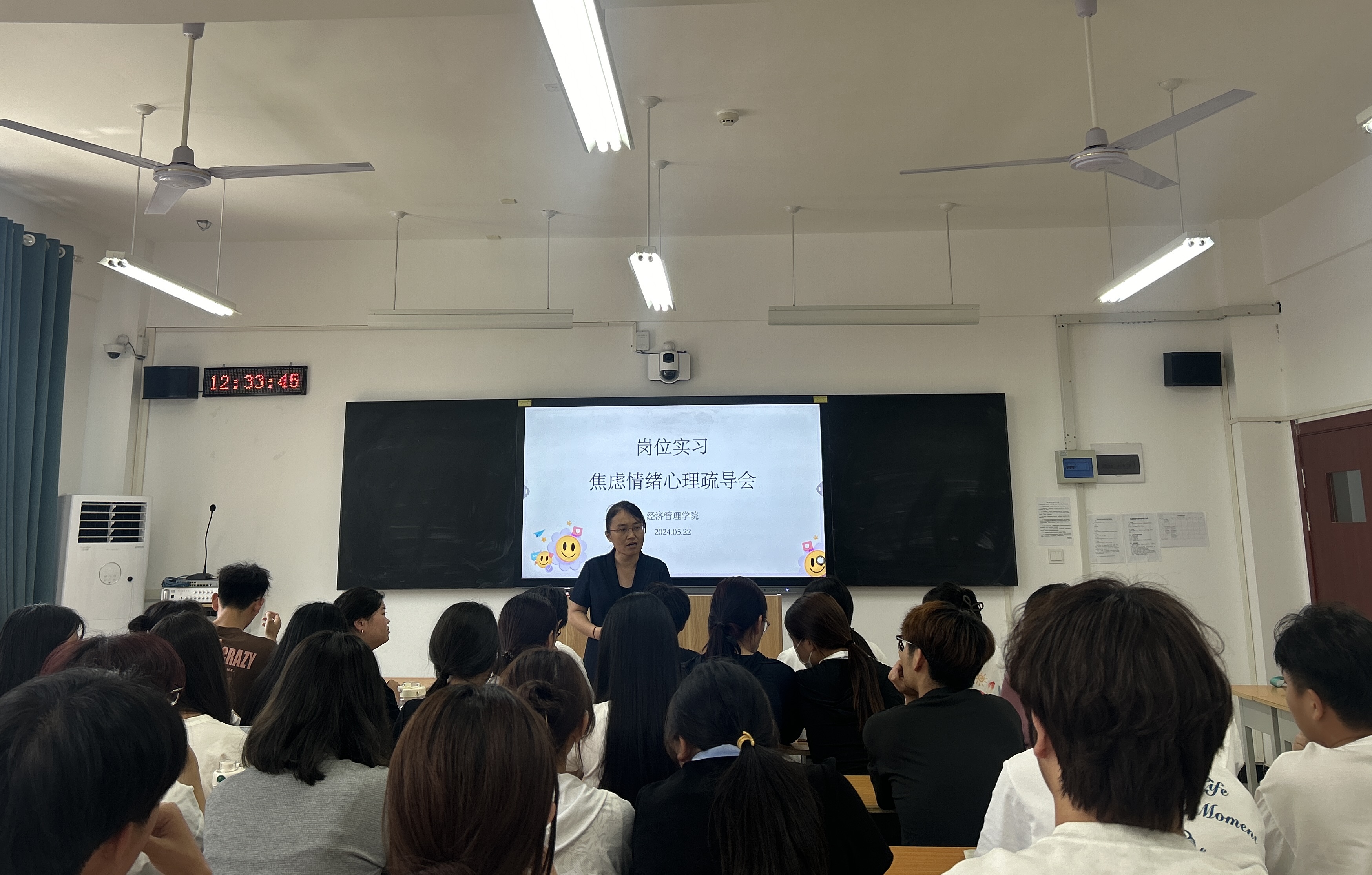 王书记强调,即将走向实习岗位的同学们应重视并正视自己目前的焦虑情绪,积极调整自己的心理状态,以更好地面对和融入今后的实习工作。围绕财会、金融、高星级酒店等专业的就业形势和心理分析及调适三个方面,为同学们讲解了心理角色转变方法、岗前焦虑情绪疏导技巧等在实习过程中应注意的诸多具体心理健康相关问题。