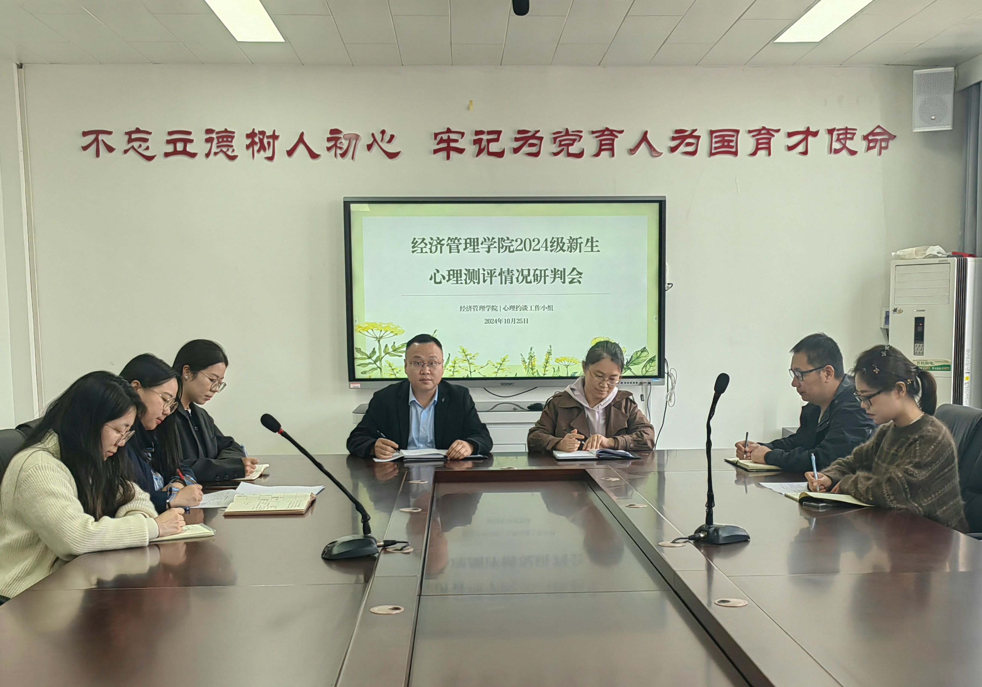 10月25日,澳门正规电子游戏平台于A502召开“新生心理测评结果研判会”,心理专员孙宇晴对学院新生心理测评结果与约谈情况做出总结,各约谈小组成员对本班重点关注学生的心理现状进行汇报与解析。