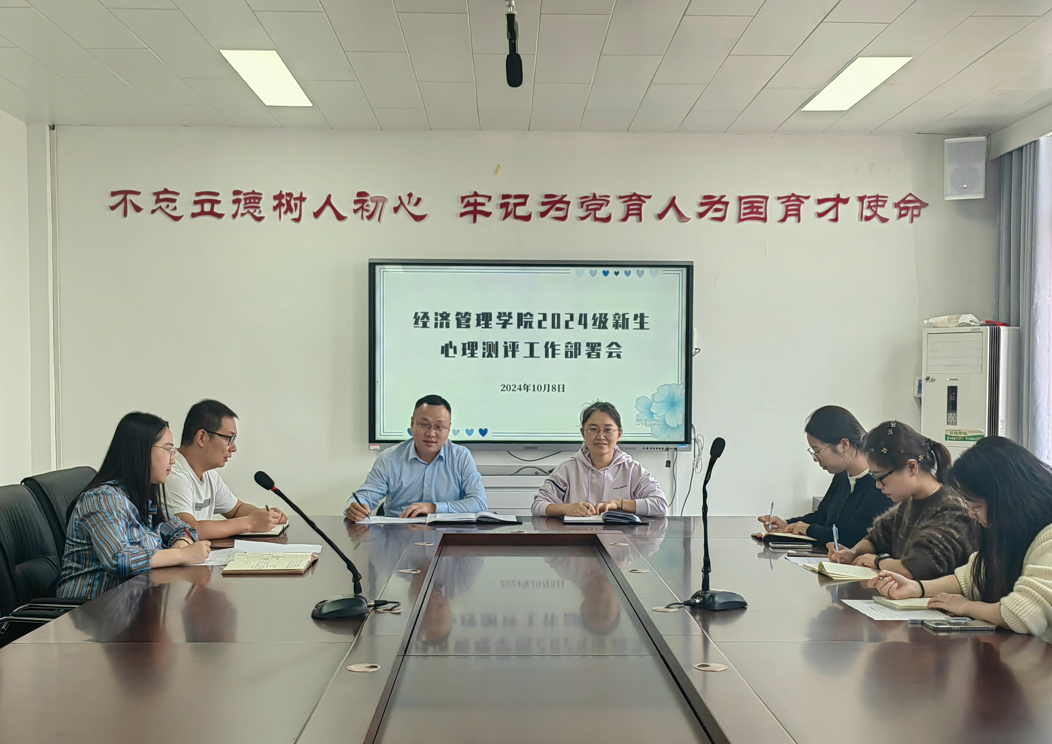 10月8日,澳门正规电子游戏平台于郑州校区A502召开了“2024级学生心理测评工作部署会”。书记张忠勇、副书记王盼红、学工办主任张昂、24级全体辅导员参加会议,会议由王盼红主持。