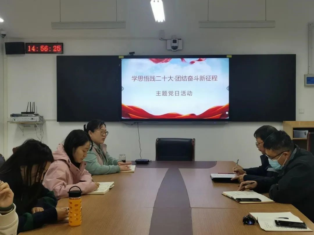 11月29日下午,澳门正规电子游戏平台党总支在郑州校区A505、开封校区B306同步开展“学思悟践二十大 团结奋进新征程”主题党日活动,集中学习10月以来习近平总书记系列重要讲话精神、系列重要文章。全体党员教师参加会议,书记李兆楠主持会议。