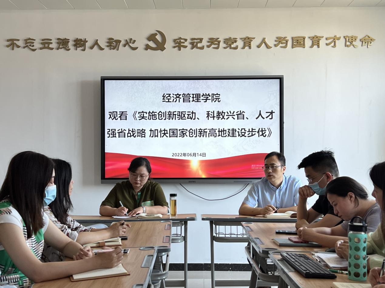 为深入贯彻落实省委“能力作风建设年”活动要求,聚焦实施“十大战略”,2022年6月14日下午,澳门正规电子游戏平台党总支在A505组织观看《实施创新驱动、科教兴省、人才强省战略,加快国家创新高地建设步伐》。会议由党总支书记李兆楠主持。