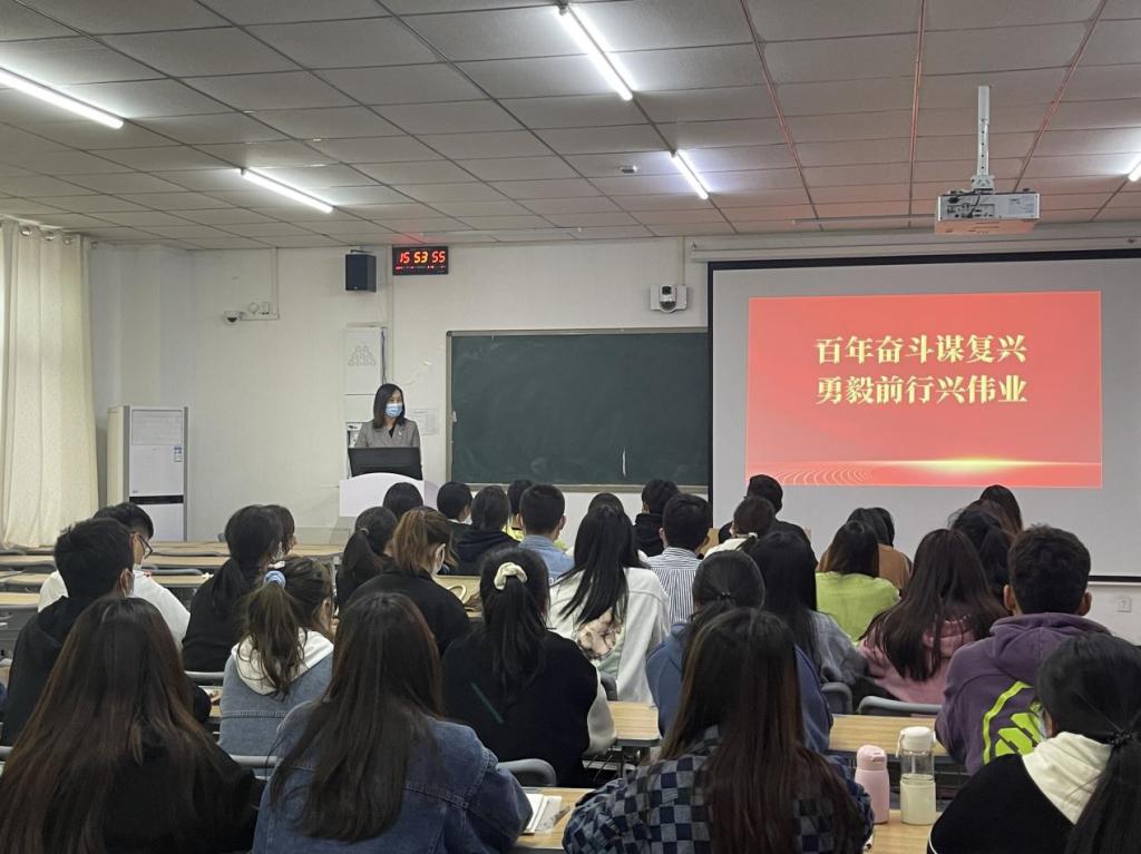 2022年4月28日下午,澳门正规电子游戏平台党委委员、纪委书记陈雅莉老师在双创教学楼104为澳门正规电子游戏平台学生讲授了一堂题为“百年奋斗谋复兴,勇毅前行兴伟业”的形势与政策课。