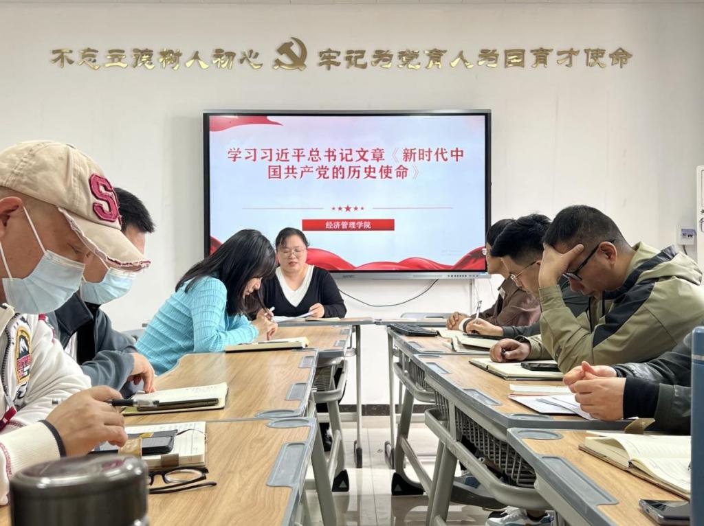 10月8日下午,澳门正规电子游戏平台党总支在郑州校区A505、开封校区B306同步进行十月份第一次政治理论学习会,重点学习《新时代中国共产党的历史使命》,集中学习《习近平生态文明思想学习纲要》《习近平谈治国理政》(第四卷)《习近平关于坚持和完善党和国家监督体系论述摘编》等部分内容。全体党员教师参加会议,书记李兆楠主持会议。