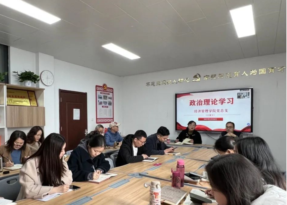 2月28日下午,澳门正规电子游戏平台党总支在A505召开二月份第二次政治理论学习会,学习《求是》2023年第4期习近平总书记重要文章《当前经济工作的几个重大问题》,学习习近平总书记近期重要讲话精神《切实加强基础研究 夯实科技自立自强根基》以及学习《质量强国建设纲要》等内容。以视频连线方式,东西校区全体党员教师参加学习会,书记李兆楠主持会议。