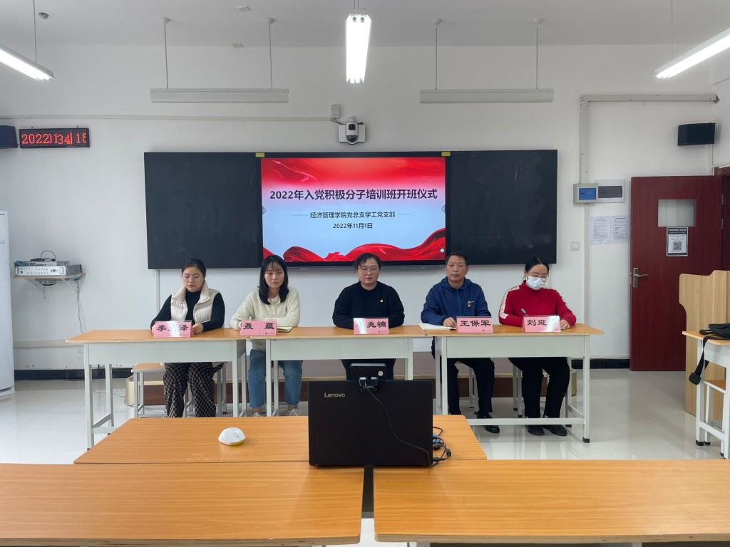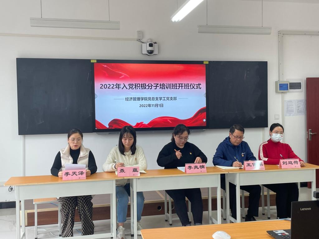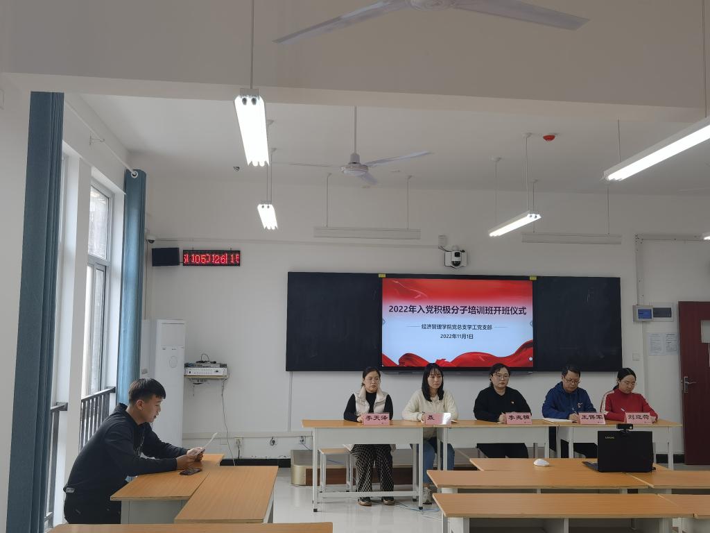 2022年11月1日下午,澳门正规电子游戏平台党总支2022年入党积极分子培训班开班仪式以线上的方式顺利举行。开班仪式由学工党支部组织委员刘迎荷老师主持,澳门正规电子游戏平台党总支书记李兆楠、保密委员王保军、组织委员聂蕴、宣传委员李天泽及全体入党积极分子出席参加了本次开班仪式。