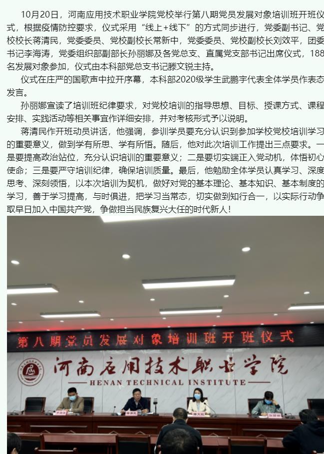 澳门正规电子游戏平台党校第八期党员发展对象培训班开班